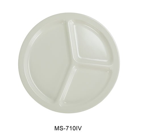 Yanco MS-710IV Mile Stone Three Compartment Plate, 10.25", Melamine, Ivory , Pack of 24
