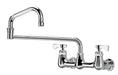 The Krowne 14-824L Royal Series 8" Center Wall Mount Faucet offers superior utility with its 24" jointed spout and low lead construction. Its easy-to-install design simplifies installation, ideal for any commercial environment. Enjoy reliable durability and superior performance with this faucet.