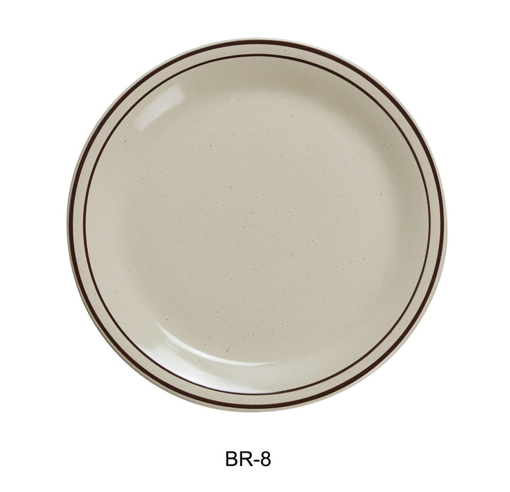 Yanco BR-8 Brown Speckled Plate, 9", China, American White, Pack of 36