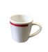 White with red-banded rims melamine dinnerware, great for creating a rustic vibe.