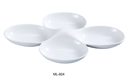 Yanco ML-824 Four Divided Bowl, 5 Oz/Well, 13.5" X 8.75", China, Super White, Pack of 12