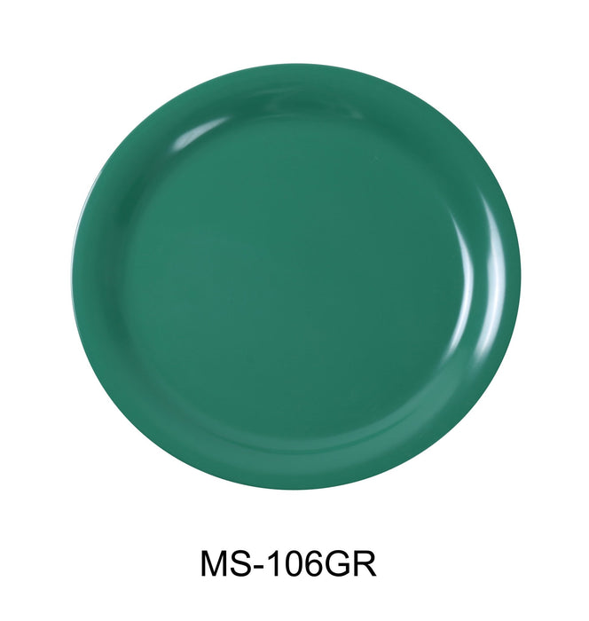 Yanco MS-106GR Mile Stone Narrow Rim Round Plate, 6.5" Diameter, Melamine, Green Color, Pack of 48