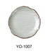 The Yanco YO-1007 round coupe plate features a matte green tea finish with highlighted brown edges, offering a refined presentation for Asian-themed dining environments. Its sturdy melamine build and textured rock-style surface make it ideal for everyday commercial or home use.